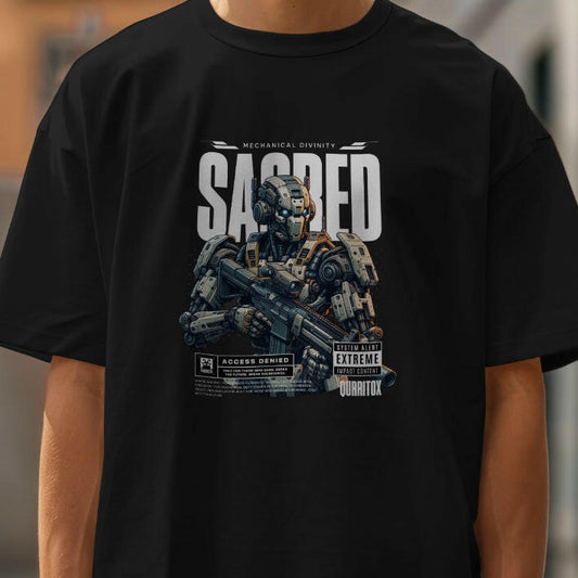 Sacred Mechanical Divinity Oversized – Futuristic Graphic T-Shirt | Qurrito